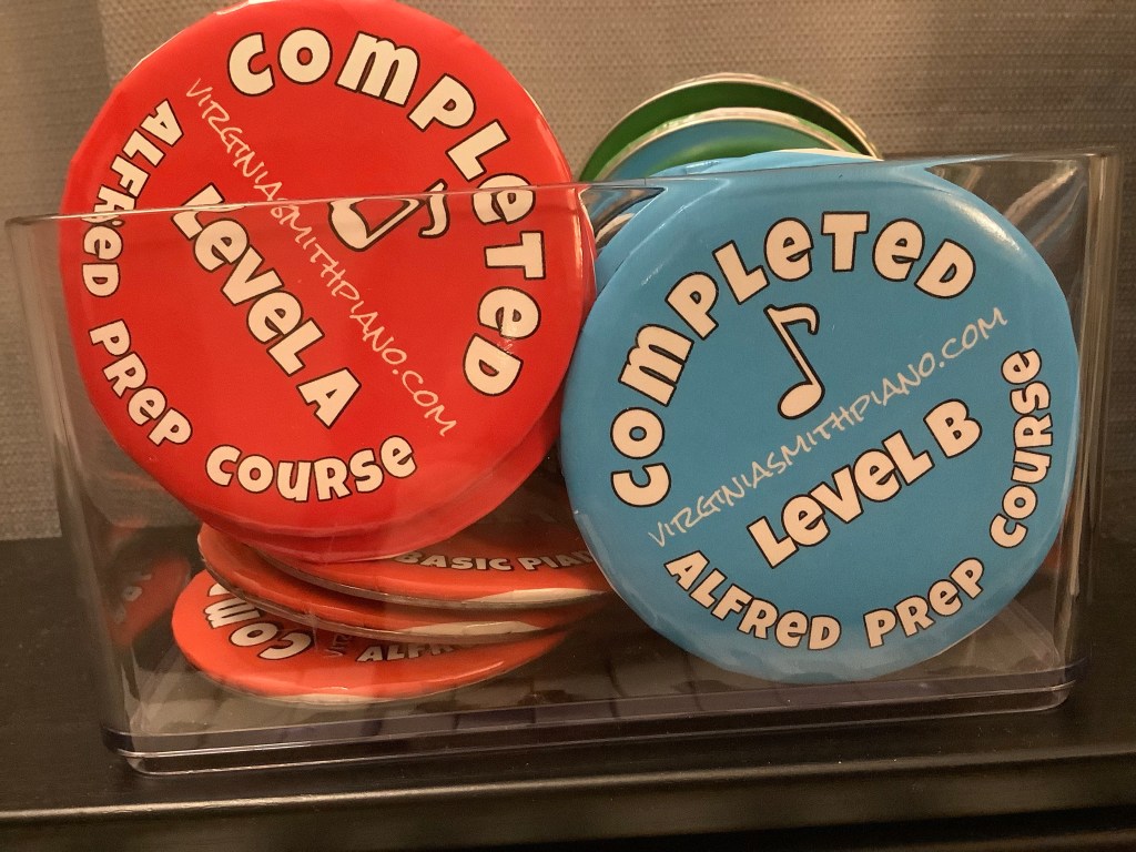 Young students earn a reward button for each level completed in their books. Buttons are proudly displayed on the student’s book bag. Young students love to count how many pages they have left in the book! Buttons, and other student rewards, are one way I help students to be happy, engaged, and feeling successful!