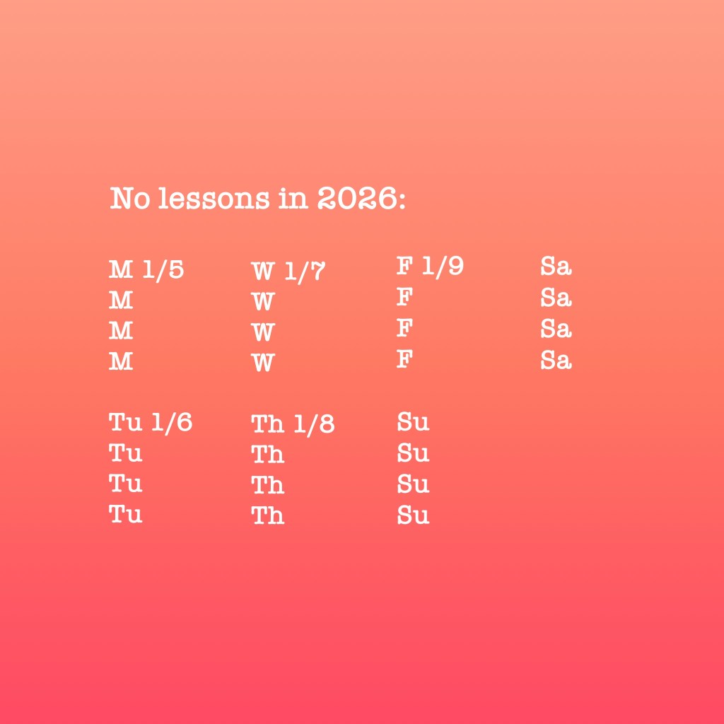 You may request a different regular weekly lesson time at any time. Please text and I will send current openings.